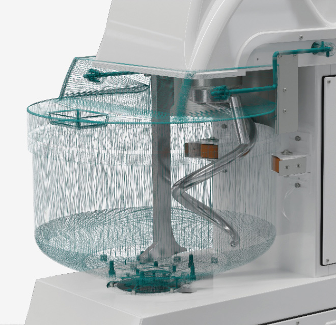 Impastatrice a spirale automatica a vasca fissa, adatta per panetterie e pasticcerie, permette di ottenere tempi di lavoro molto brevi.