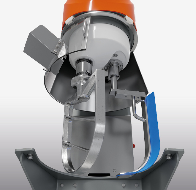 Das größte Modell für handwerkliche Produktionsbetriebe, mit einem Kesselinhalt von 160 Litern, elektronischem Drehzahlregler mit Inverter und ebenso einfacher wie praktischer Kesselentnahme ohne Entfernen von Werkzeugen.